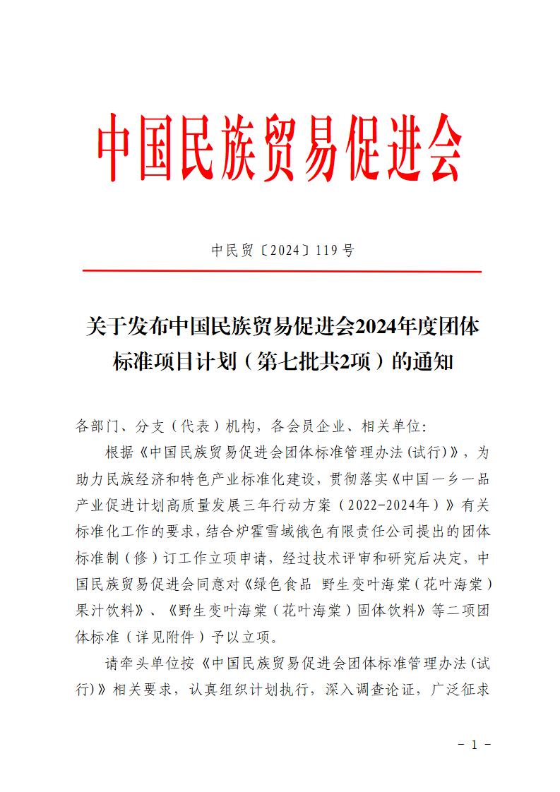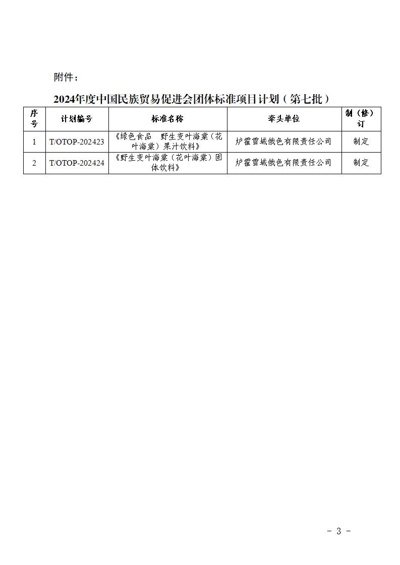 关于发布中国民族贸易促进会2024年度团体标准项目计划(第七批共2项)的通知