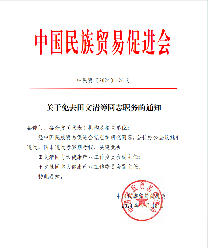 关于免去田文清等同志职务的通知