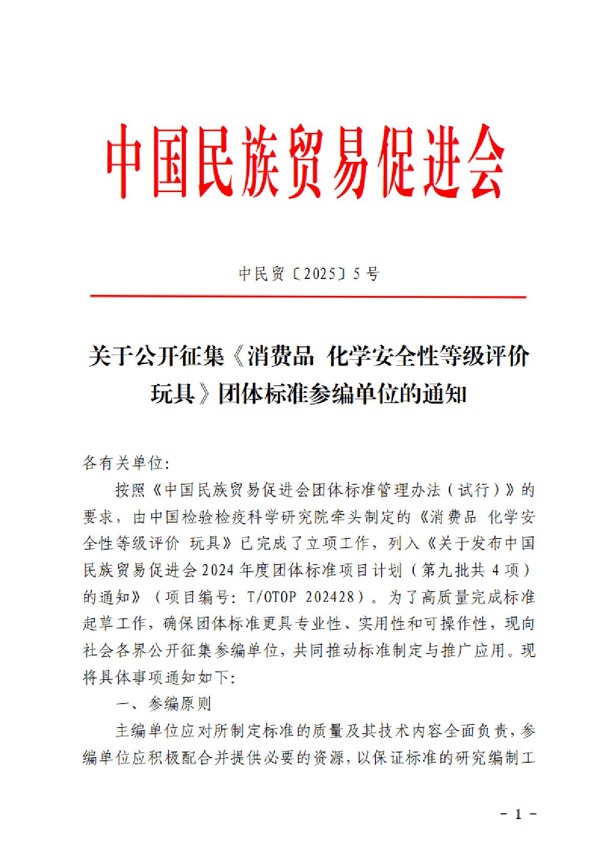 005.关于公开征集《消费品 化学安全性等级评价 玩具》团体标准参编单位的通知