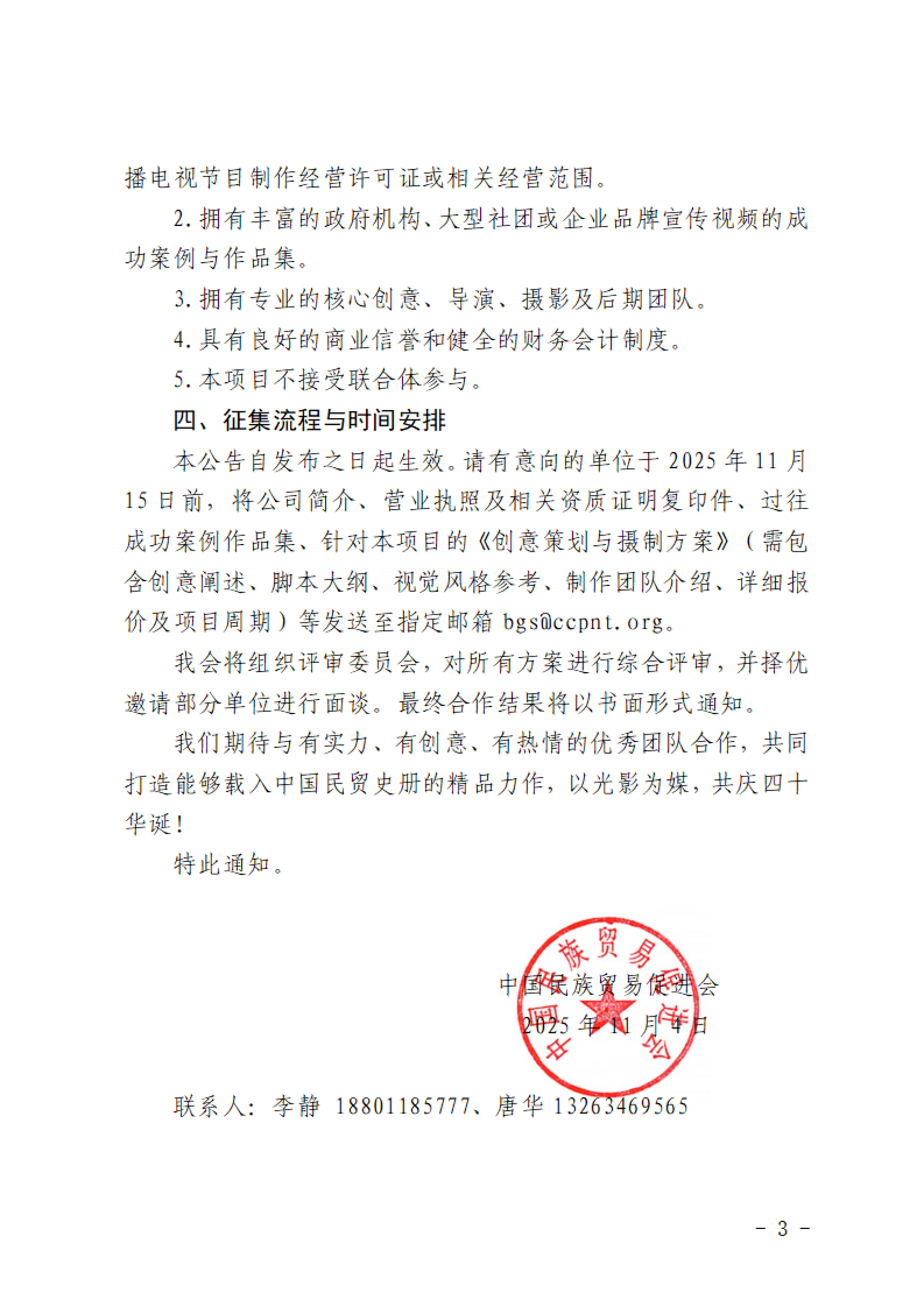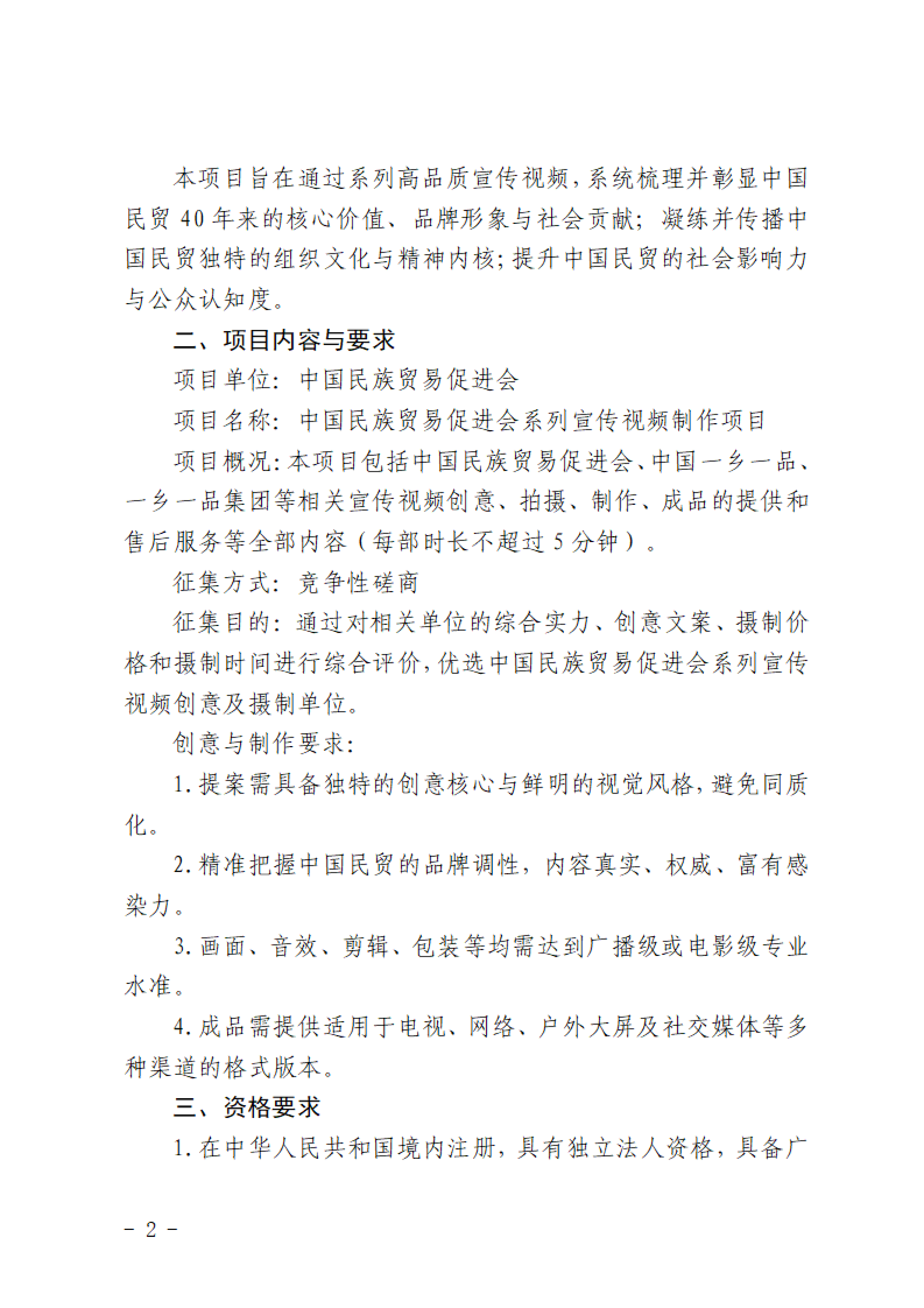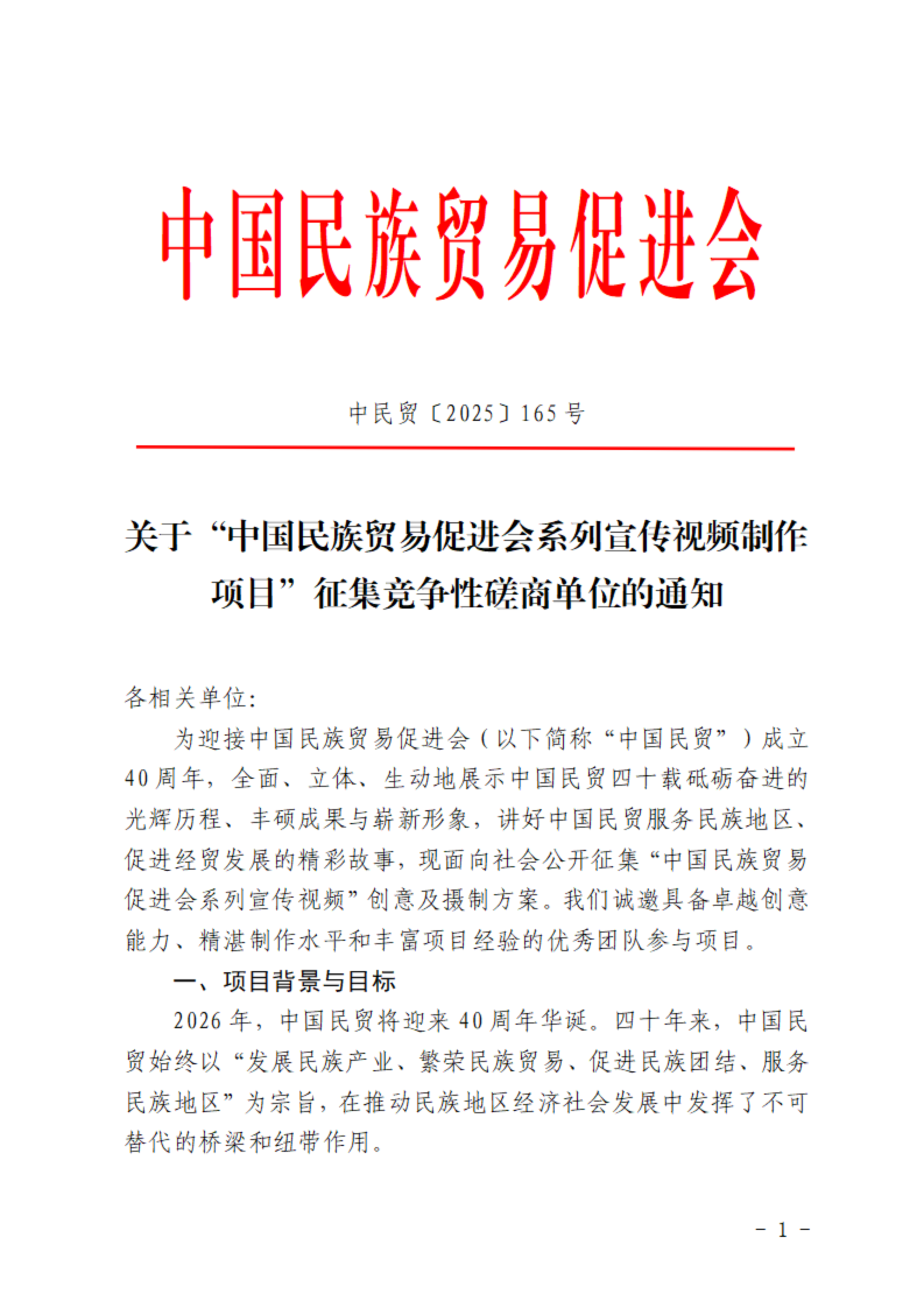 关于“中国民族贸易促进会系列宣传视频制作项目”征集竞争性磋商单位的通知