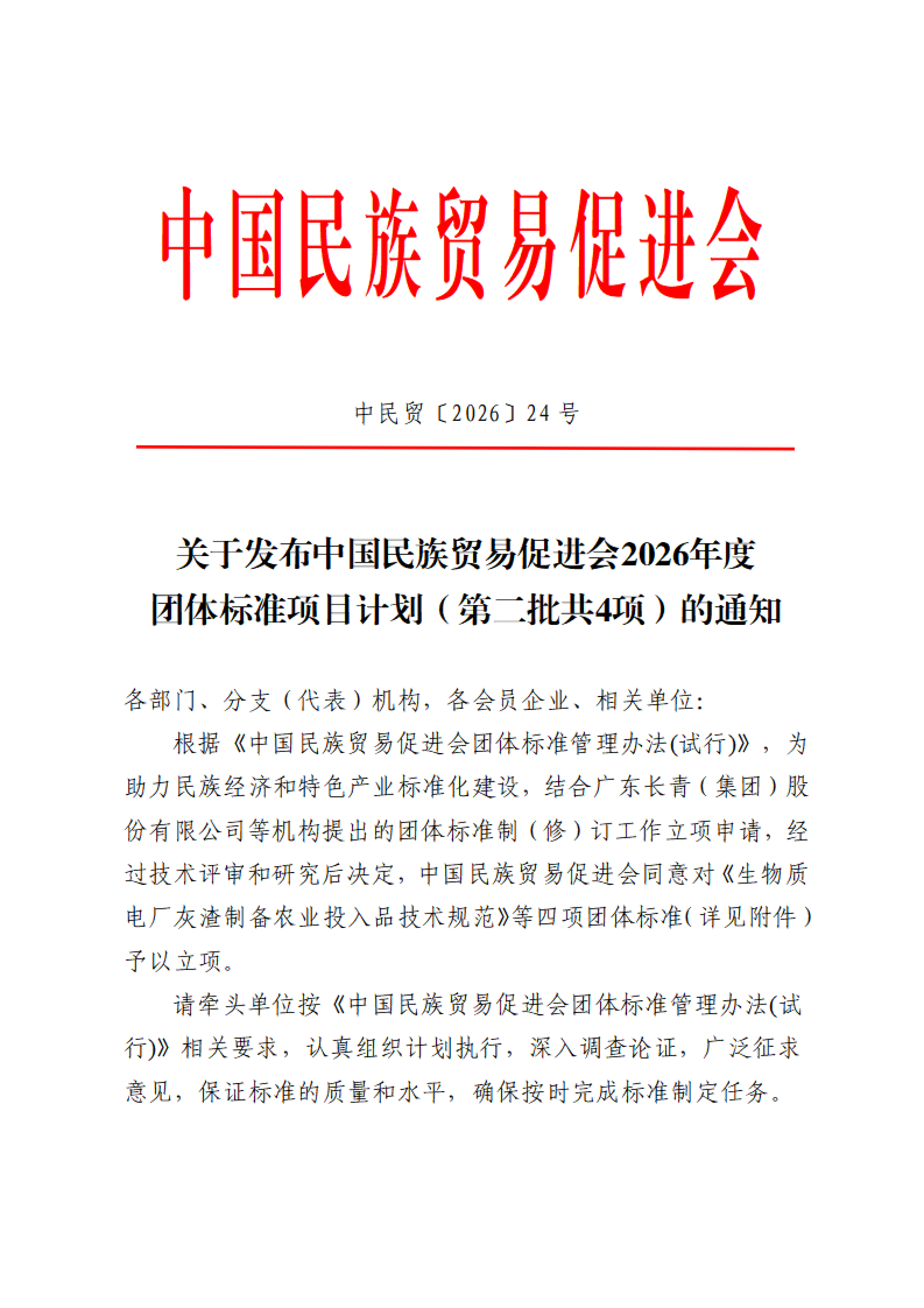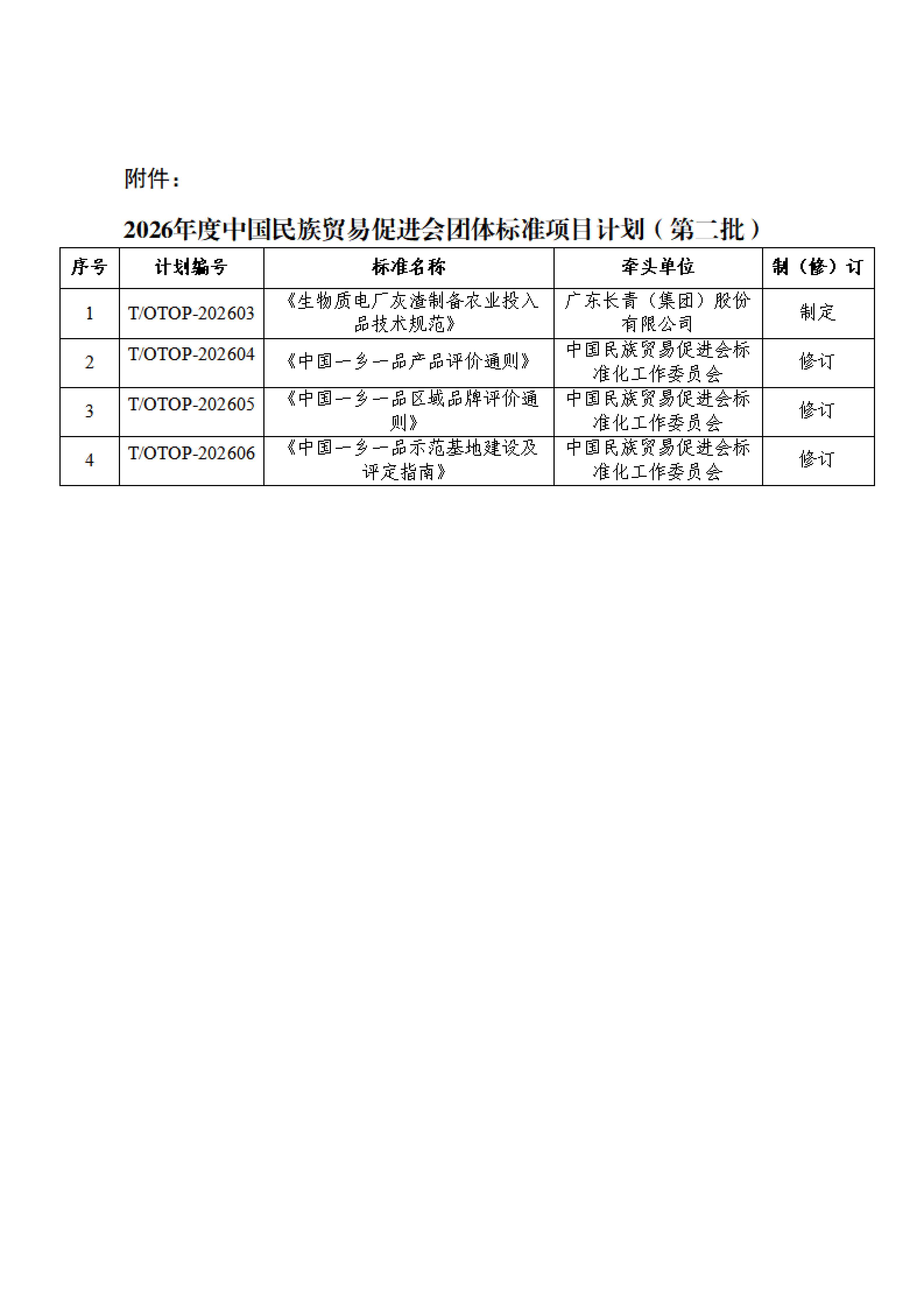 关于发布中国民族贸易促进会2026年度团体标准项目计划(第二批共4项)的通知