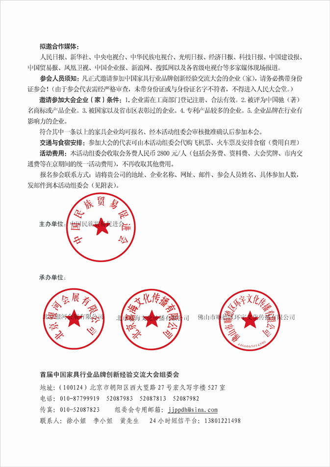 首届中国家具行业品牌创新经验交流大会暨《中国百位家具人风采》首发式邀请函